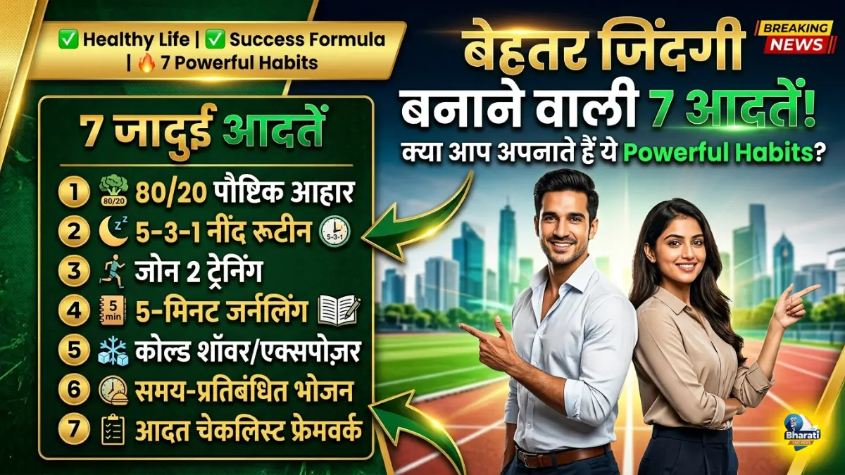 क्या आप हर सुबह थकान के साथ उठते हैं? क्या काम के बोझ और खराब सेहत ने आपकी मुस्कान छीन ली है? सावधान! अगर आपने आज अपनी दिनचर्या नहीं बदली, तो आने वाले कुछ साल आपकी सेहत और करियर के लिए भारी पड़ सकते हैं। जिंदगी बदलने वाले 7 गोल्डन हैबिट्स केवल शब्द नहीं, बल्कि एक आधुनिक ‘सर्वाइवल किट’ हैं। Healthy lifestyle tips in Hindi 2026 की तलाश करने वालों के लिए यह लेख किसी खजाने से कम नहीं है। हम अक्सर बड़ी सफलता के पीछे भागते हैं, लेकिन छोटे बदलावों को भूल जाते हैं। Bharati Fast News की इस विशेष लाइफस्टाइल रिपोर्ट में हम उन 7 वैज्ञानिक रहस्यों से पर्दा उठाएंगे जो आपको एक साधारण इंसान से ‘सुपरह्यूमन’ बना सकते हैं।