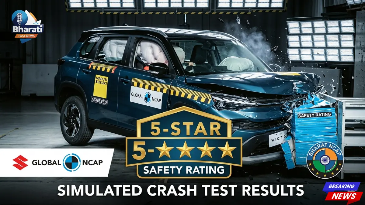 आज 17 अप्रैल 2026 को ऑटोमोबाइल जगत में सबसे ज्यादा चर्चा मारुति की उस कार की हो रही है जिसने सालों से चले आ रहे “कम सुरक्षा” के दाग को धो डाला है। मारुति विक्टोरिस न केवल अपने लुक्स और माइलेज के लिए, बल्कि अपनी मज़बूत सुरक्षा रेटिंग के लिए भी सुर्खियों में है। Bharati Fast News की विशेष ऑटो रिपोर्ट के अनुसार, मारुति विक्टोरिस ने ग्लोबल एनकैप (Global NCAP) और भारत एनकैप (Bharat NCAP) दोनों ही क्रैश टेस्ट में 5-स्टार रेटिंग हासिल कर सबको चौंका दिया है। यह मारुति सुजुकी की पहली ऐसी कॉम्पैक्ट एसयूवी बन गई है जो लेवल-2 ADAS (Advanced Driver Assistance Systems) जैसी आधुनिक तकनीक से लैस है। इस लेख में हम इस नई कार की सुरक्षा रेटिंग का विस्तार से विश्लेषण करेंगे।